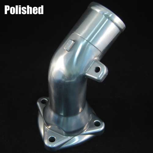 We made our thermostat neck in Aluminum to replace the brittle, often cracked S5 unit. Get one of these when you change out your thermostat. These are made directly using an OEM piece, direct copy, but in aluminum. We have them finished in highly polished, bead blasted, or E-Coated black for that factory OEM look.